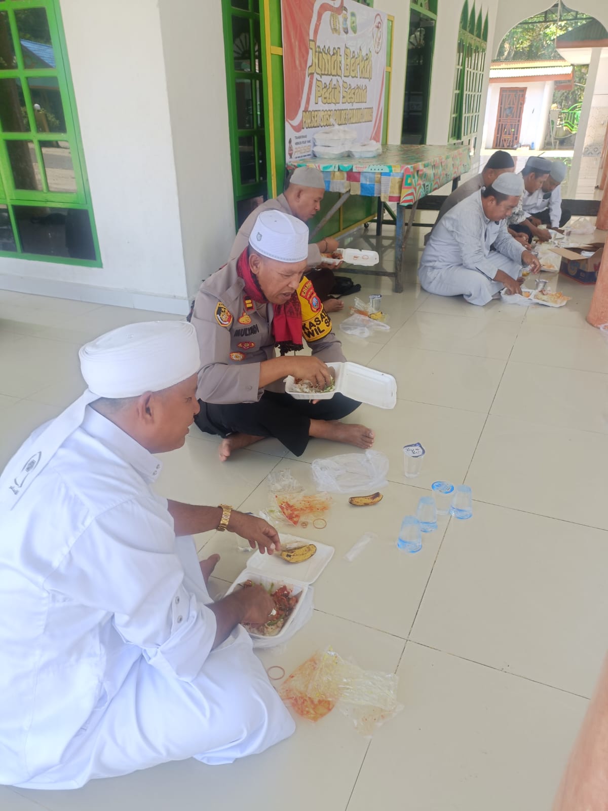 Sebanyak 150 kotak makanan dibagikan kepada jama’ah dengan tujuan menjalin kedekatan antara kepolisian dan masyarakat serta menciptakan suasana yang aman dan damai. Kegiatan ini merupakan upaya Polri dalam membangun citra yang positif serta menjaga hubungan harmonis dengan masyarakat setempat.